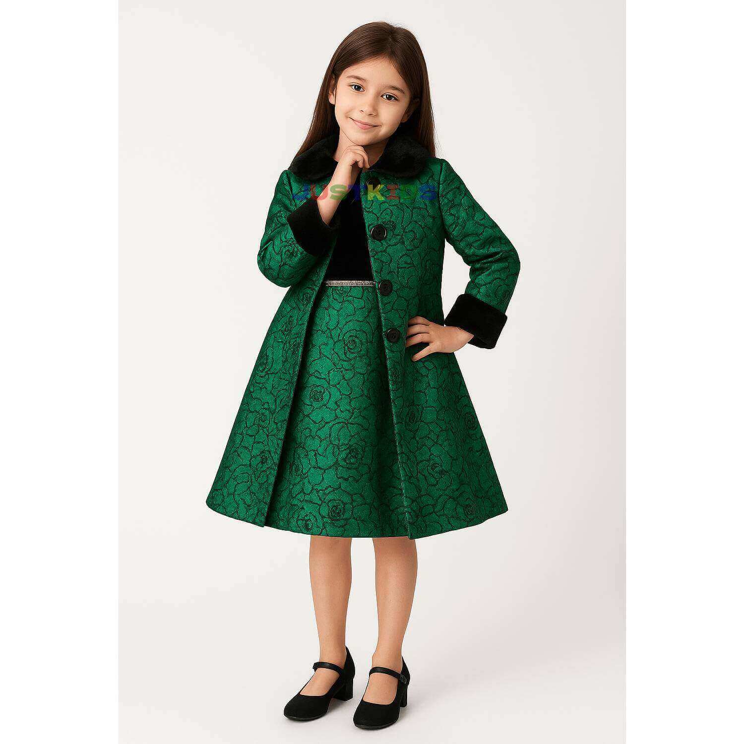 by Emily West offers timeless elegance and cozy comfort for your little fashionista. Featuring a luxurious velvet dress paired with a woven flocked coat, this outfit is perfect for winter holidays, weddings, and formal events. The rich textures and classic silhouette create a picture-perfect look that blends warmth with style. Whether she’s attending a festive gathering or posing for family portraits, this set ensures she stands out with grace and charm.