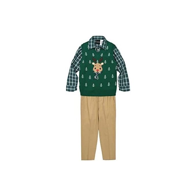 makes every special occasion unforgettable. This charming 3-piece outfit features a cozy sweater vest, crisp dress shirt, and tailored pants—designed for comfort and style. Whether it’s a wedding, birthday, or holiday celebration, your little one will look polished and picture-perfect. Crafted with soft, breathable fabrics and attention to detail, this set blends elegance with everyday ease. It’s the ideal choice for parents who want their baby boy to shine in timeless fashion.
